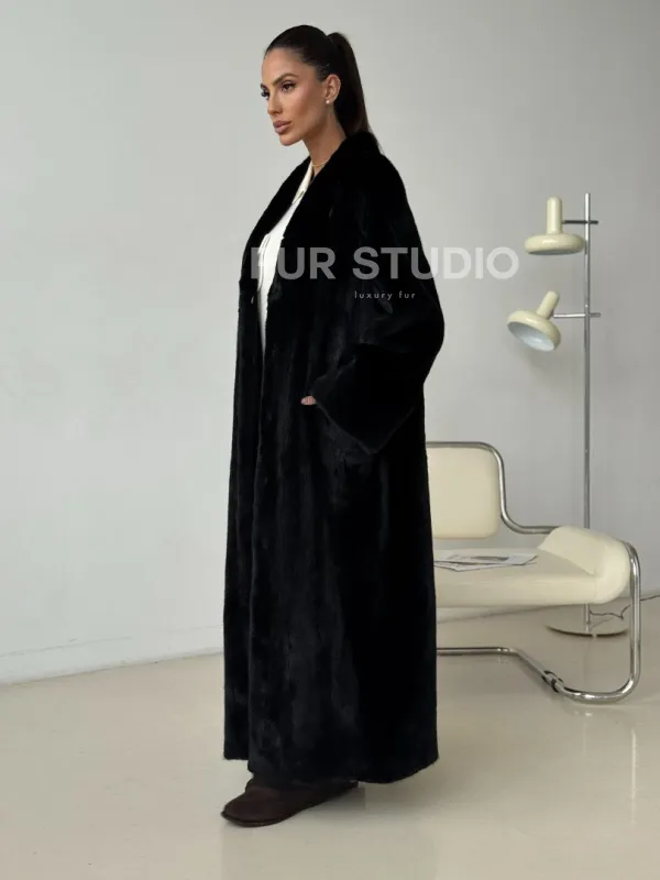 Мех данной шубы аукционная норка , цвет черный. Предлагается в размерах от 42 до 52. Длина модели 125-130 см, что выгодно подчеркивает фигуру девушек. Эта модель идеально подойдет для девушек и женщин, предпочитающих роскошные натуральные меха.