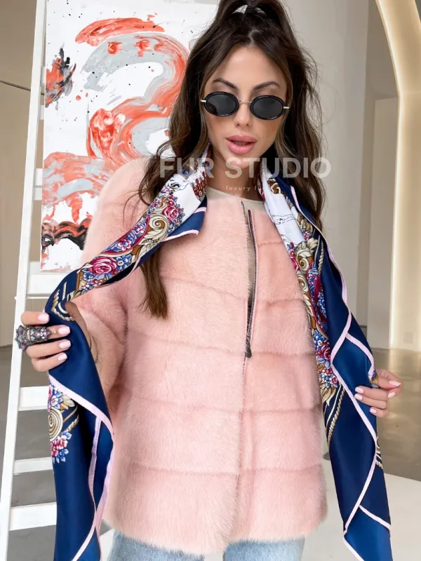 Модель сочетается с базовым гардеробом, но подойдет к вечернему наряду подходящего оттенка. Отличный вариант для автоледи. Разрезы по бокам не сковывают движения. Элегантный крой при необходимости скроет недостатки фигуры. Купить норковую кофту на молнии в цвете сакура могут девушки, которые не боятся выглядеть женственно и воздушно.
