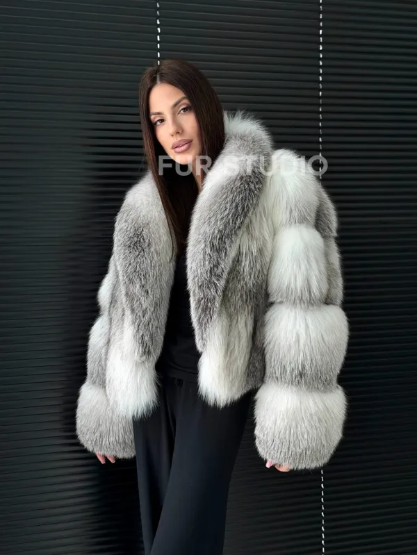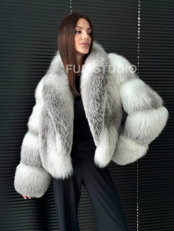 Шуба из меха арктической лисы - белая 102905