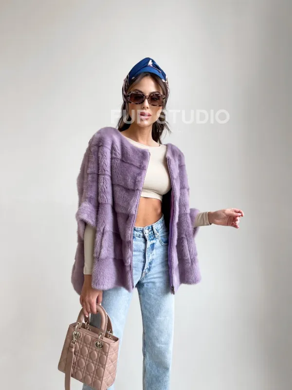 Верхняя одежда прекрасно сочетается со стилем casual и подчеркнет вашу утонченность. Рукав три четверти можно дополнить оригинальными высокими перчатками. Ваш образ в этом свитере будет приковывать восхищенные взгляды. Купить свитер из меха норки в лавандовом оттенке – выбор современных модниц, которые следят за трендом и идут в ногу со временем.